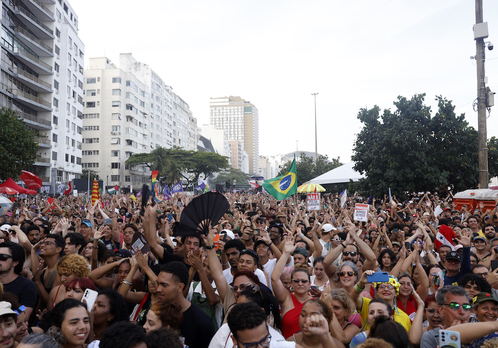 A destacar que o famoso rapper Emicida, lenço palestino posto na nuca com pontas caindo sobre o peito, em vez de música, fez ali, sem esgotar os dois minutos que tinha à disposição, uma fala eloquente e radicalmente política. “Nunca se esqueçam, essa cidade é nossa! A rua é nós, São Paulo!”, bradou.  Recebeu de volta a reação vibrante da multidão. Prosseguiu nessa trilha: “Tomemos as ruas quantas vezes forem necessárias pra defender nossos direitos, pra defender nosso povo, pra defender nossa origem, pra defender nossa gente, pra defender nosso país, pra defender nosso futuro, pra defender nossa esperança, pra defender um amanhã decente, pra defender dignidade, pra defender salário, pra defender agricultura, pra defender cultura, pra defender ecologia, pra defender o planeta…” Foi em frente lançando uma pergunta ao público: “o Brasil é crucial para salvar o planeta, certo irmão?” Ovacionado, concluiu com as palavras de ordem “Sudão livre, Congo livre, Palestina livre, e Brasil livre da PEC da bandidagem”.