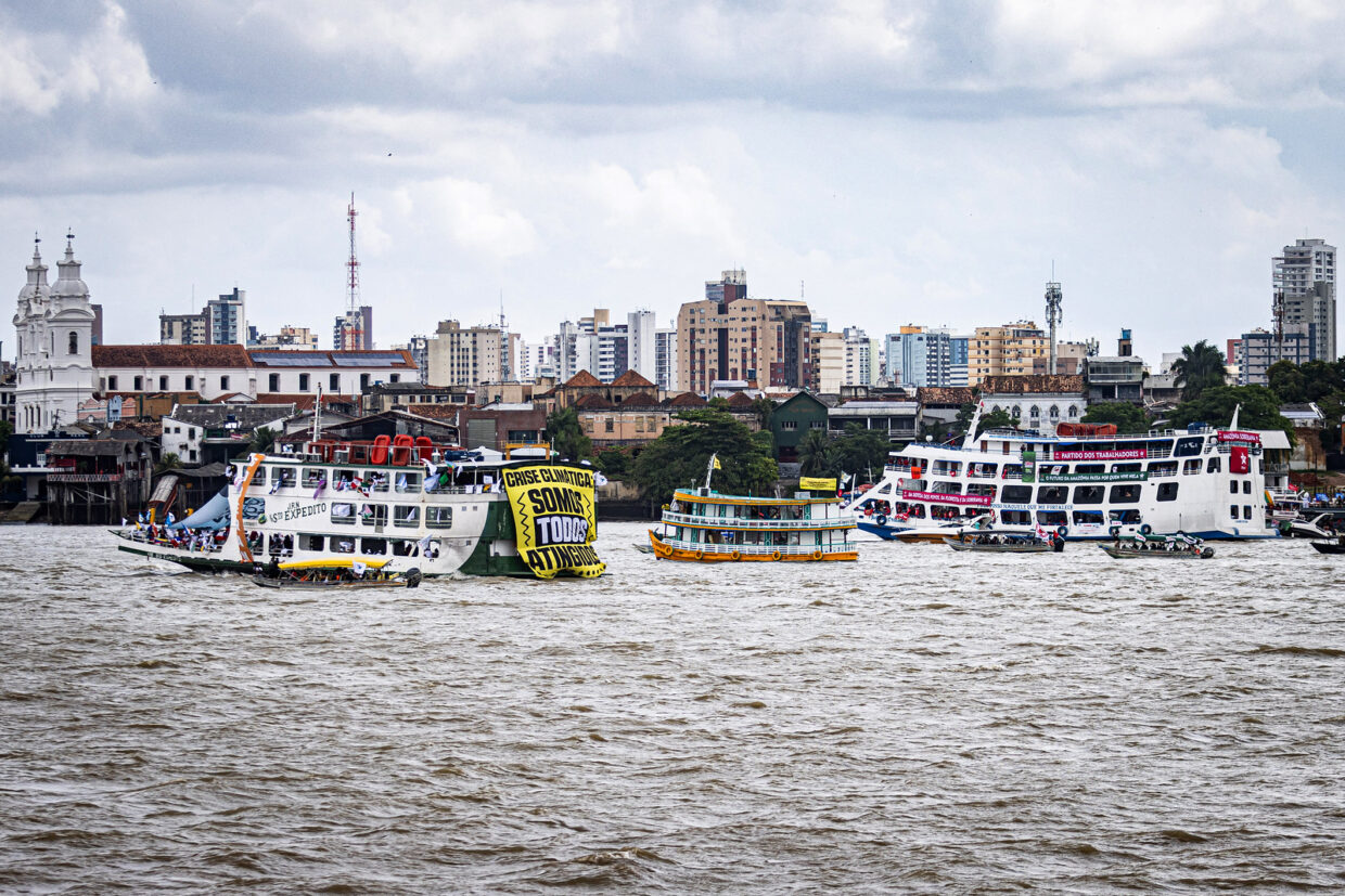 Barqueata abriu a Cúpula dos Povos reivindicando justiça climática, preservação da Amazônia e o fim da exploração de combustíveis fósseis