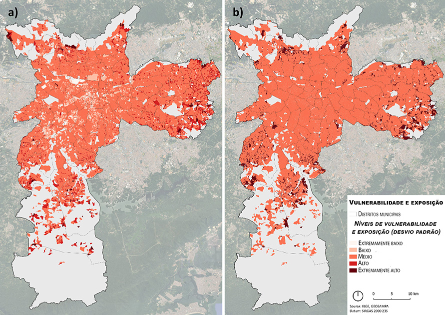 Em estudo, as pesquisadoras revelaram, visualmente, a conexão entre a desigualdade social e a vulnerabilidade climática no município. A partir de dados públicos, foi gerado o primeiro mapa de risco ao calor — locais que podem atingir temperaturas maiores do que seus arredores — para a cidade de São Paulo. Ele foi o primeiro a ser elaborado a partir de dados públicos, na escala do setor censitário, envolvendo os parâmetros de proximidade da vegetação, morfologia urbana e tipo de habitação tendo como plano de fundo a definição de risco do IPCC.
